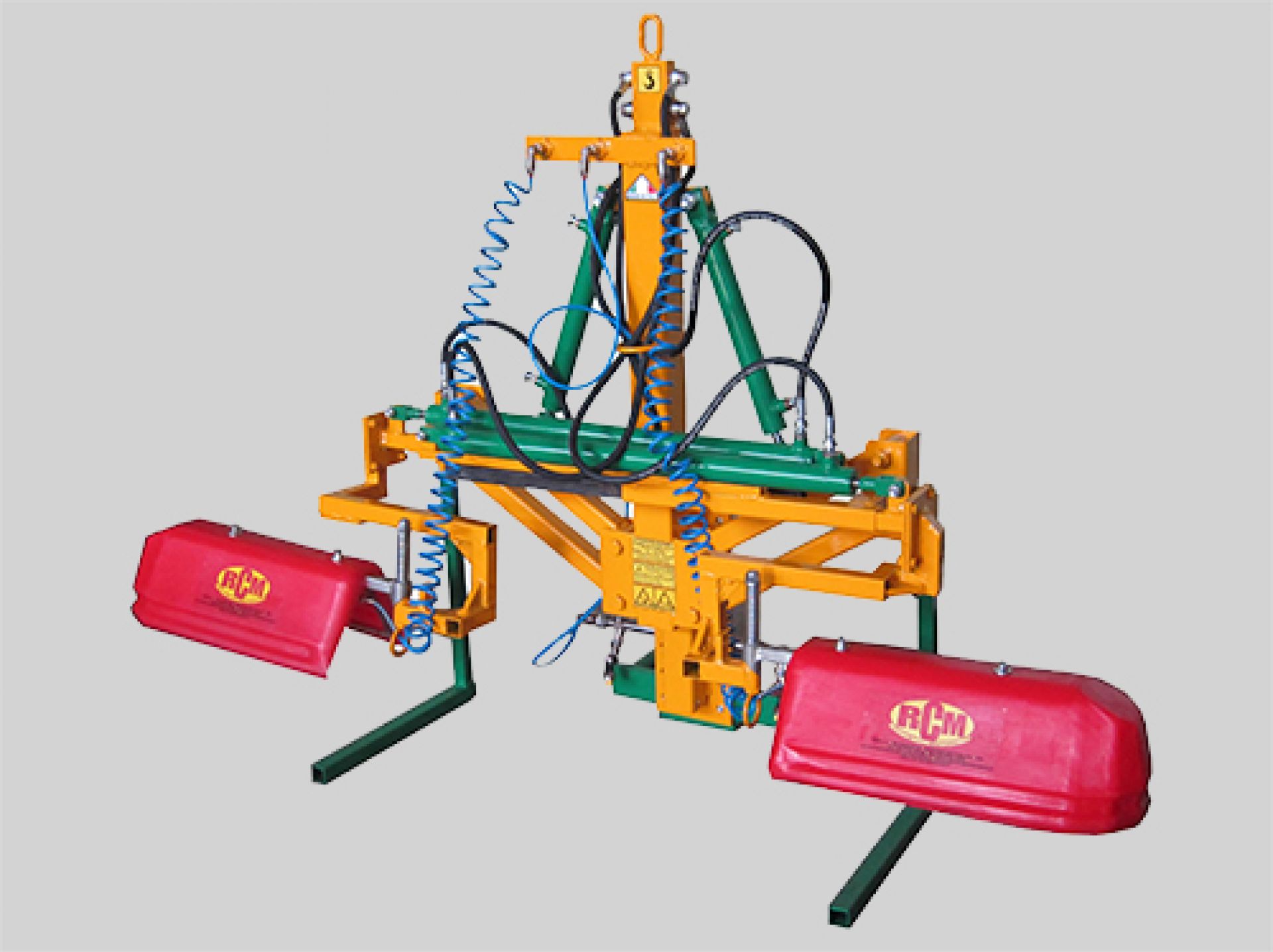 A permetezőkeret a traktor frontsúly tartójára több előre kialakított magassági pozícióban is felszerelhető. A permetező fej talajtól mért magassága és a keret munkaszélessége (165-285 cm között) hidraulikusan állítható.