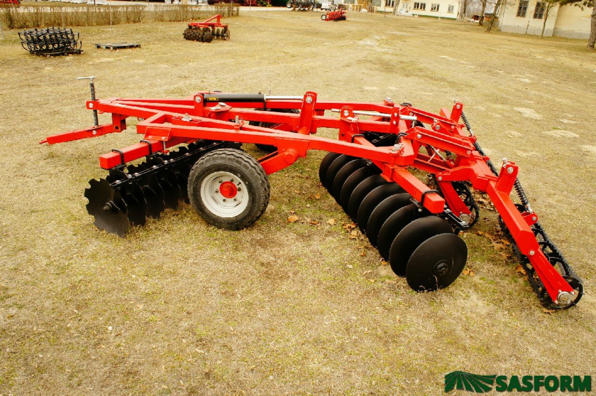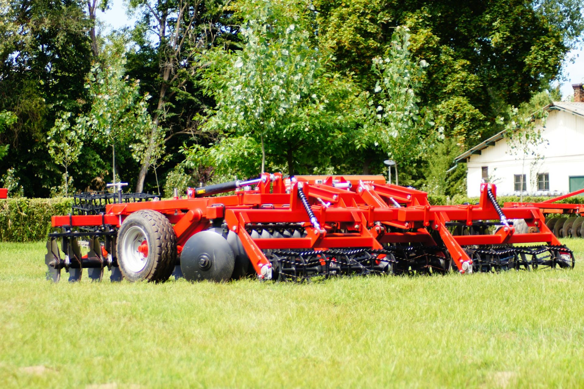 - A robusztus felépítés, Ø 560 mm-es, sűrű osztású tárcsalevelek 210 mm-es osztásban jelentősen megnövelték a gép súlyát, de igény szerint kérhető Ø 610 mm-es lapokkal valamint öntvény távtartókkal is.