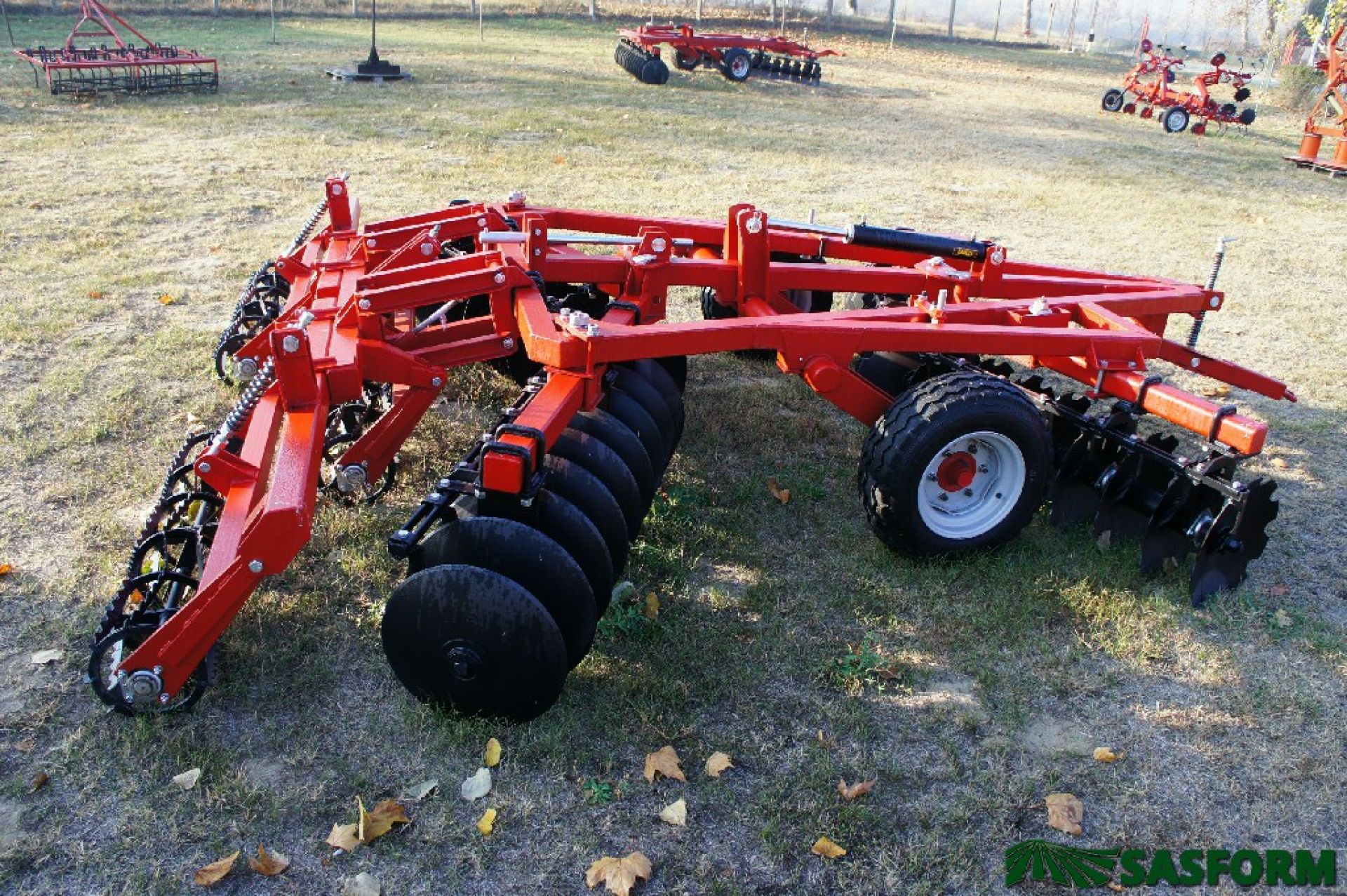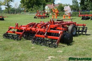 - A robusztus felépítés, Ø 560 mm-es, sűrű osztású tárcsalevelek 210 mm-es osztásban jelentősen megnövelték a gép súlyát, de igény szerint kérhető Ø 610 mm-es lapokkal valamint öntvény távtartókkal is.